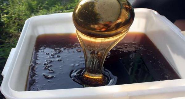 Гречаний мед на фото також має не дуже привабливий вигляд. Темний, неоднорідний, іноді навіть смолисто-чорного кольору. Але саме він вважався найбільш корисним серед усіх сортів, завдяки чому також називається високосортним.